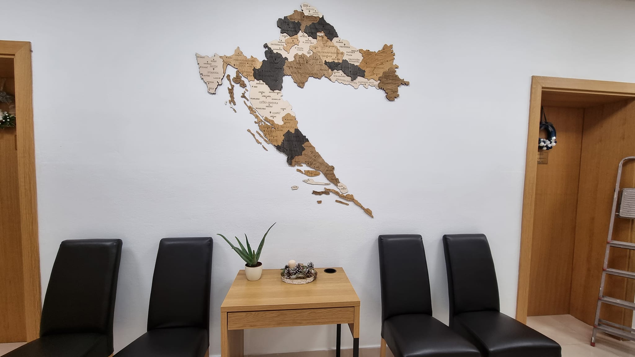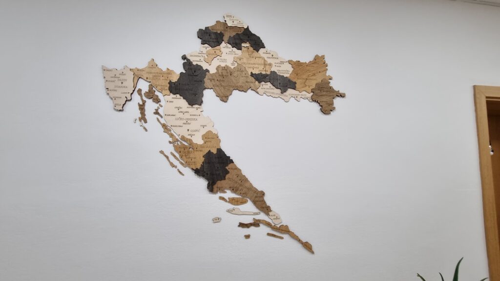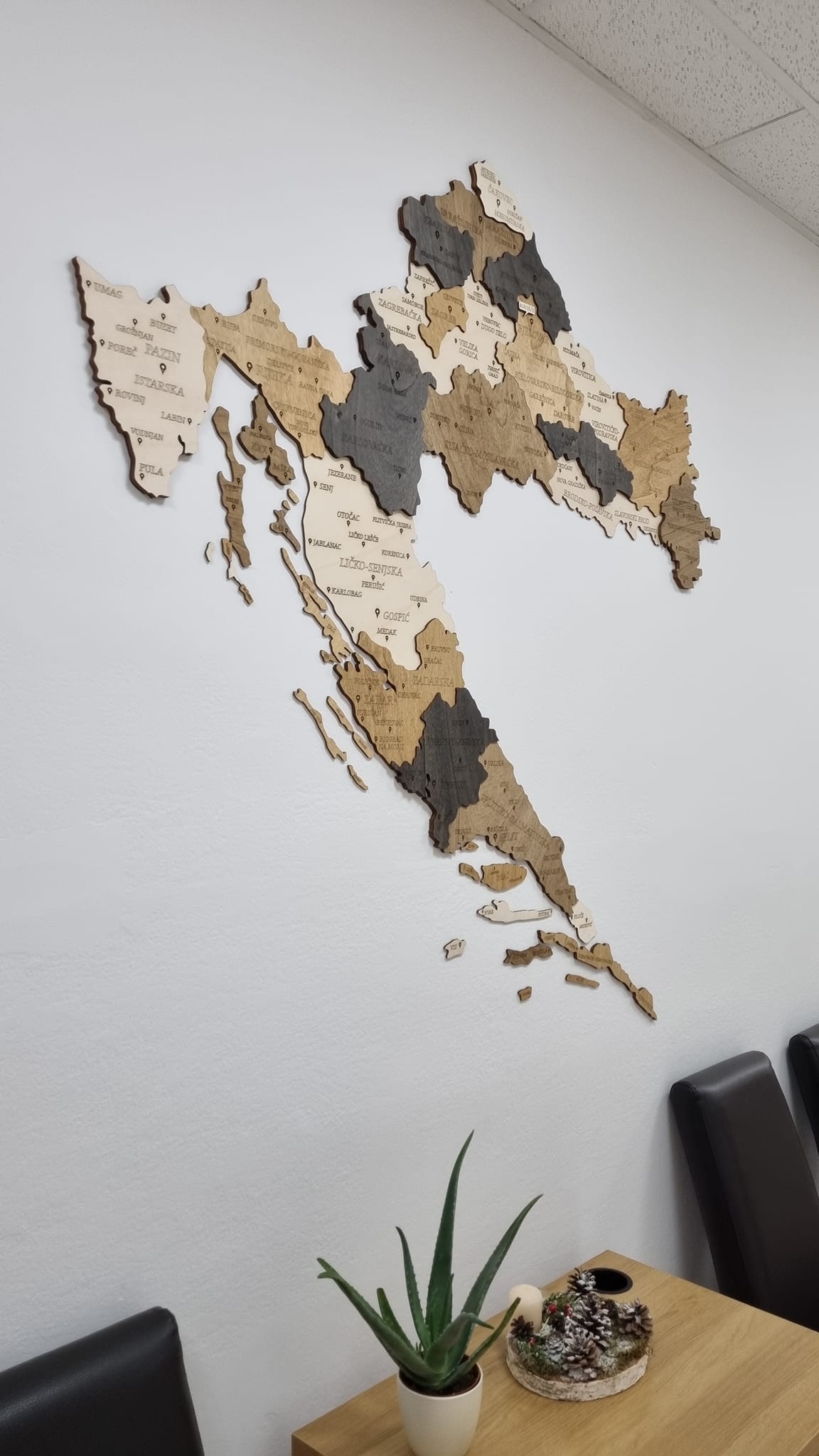 Karta Hrvatske se proizvodi od šperploče u više boja i više slojeva da se dobije 3D dojam.